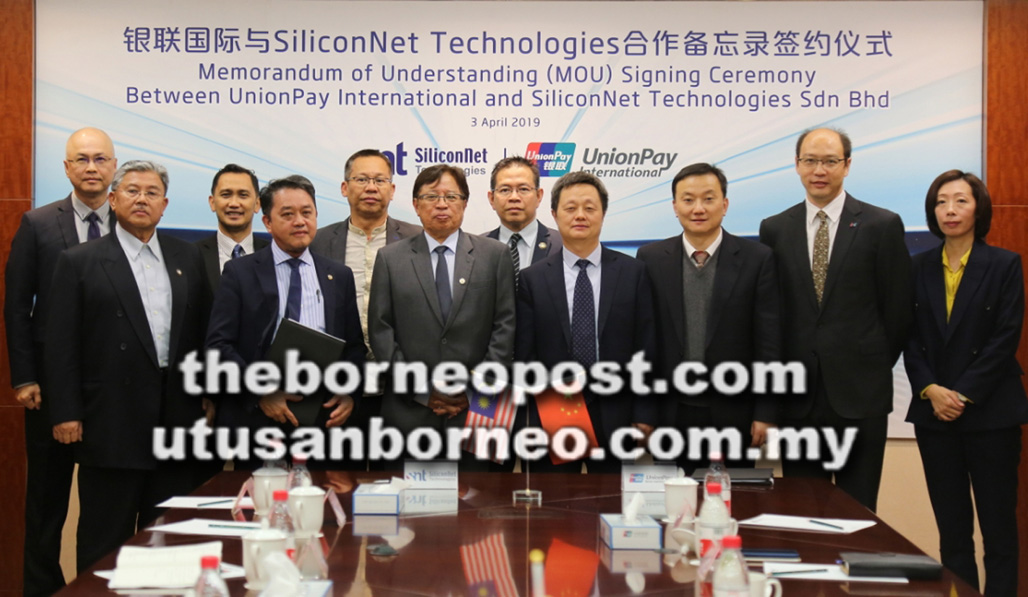 The MoU signing team from Sarawak was led by SiliconNet Technologies Sdn Bhd (SNT) chairman Tan Sri Datuk Amar Abdul Aziz Husain while UnionPay International was represented by its vice president Wang Lixin.