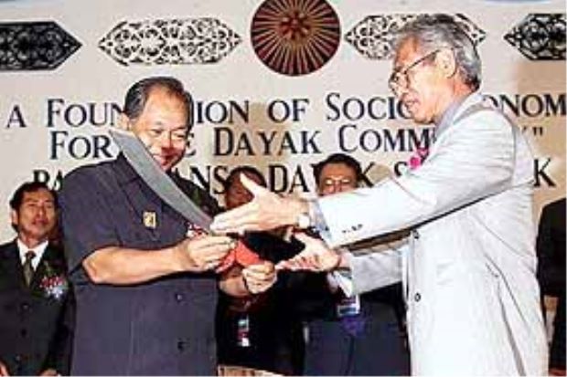 The PBDS was formed in 1983 when it split from the Sarawak National Party (SNAP). The SNAP had been part of a coalition government (Sarawak Barisan) and represented the interests of the Dayak community. However, in 1980, a dispute arose over who would succeed President Datuk Dunstan Endawie when he resigned. The most likely candidate was the then Deputy President, Datuk James Wong (a Chinese), but a faction of young highly educated Iban members protested that SNAP, as a Dayak-based party, should nominate a Dayak as President. However, the senior Iban members, whose educational level was relatively low, supported the Chinese candidate because they did not want to see their influence in the party challenged by the young educated generation.This incidence was seen as a confrontation between “multi-racialism” promoters and Dayak sympathizers on the one hand, and as friction between different generations on the other. In short, it was a combination of political and ethnic strife within the party that led to a confrontation among the Dayak (mostly Iban) members. As a result, the young Iban members were defeated by the faction favoring the Chinese candidate at the party’s general meeting in 1981, so the younger members broke away from SNAP to organize a new Dayak-based party, the PBDS, in 1983.