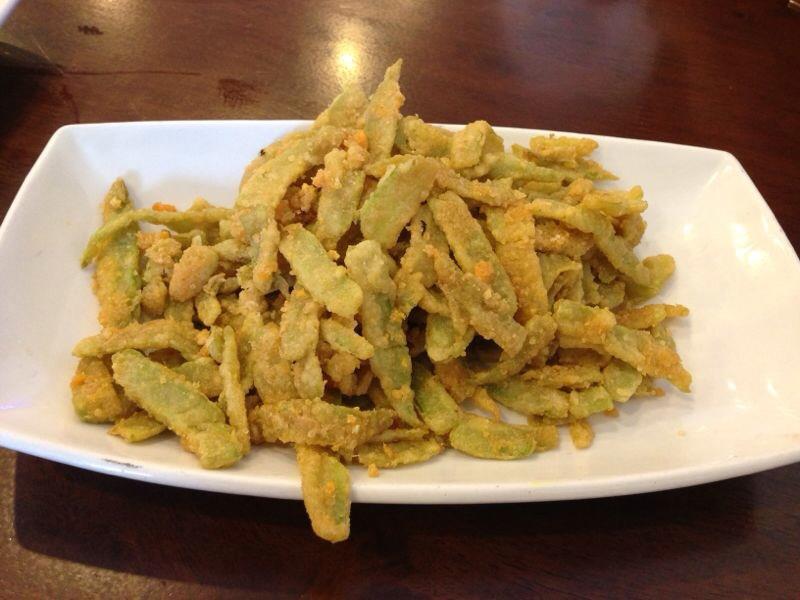 It’s really hard to think bitter and salty combination can make this savoury recipe. Ingredients (For 2~3) 200g bitter gourd, thinly sliced 2 salted egg yolk 2 tbsp butter Batter 100ml ice water 50g all purpose flour 1/2 tsp baking powder pinch of salt