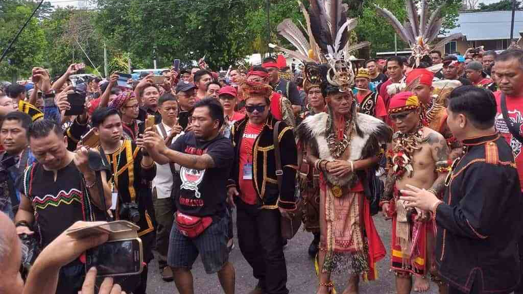 Dayak dari pelabagai suku kaum yang datang dari seluruh Borneo bersama para tokoh-tokoh adat dan masyarakat bersama para panglima perang Dayak telah berkumpul di Batu Sumpah pada pagi tadi, di dalam acara yang dijadualkan berlangsung dari jam 7 pagi sampai 11 pagi.