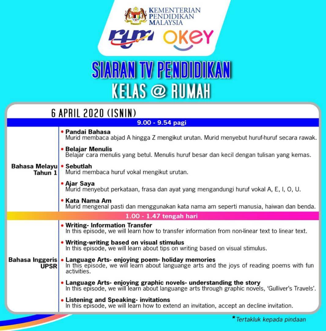COVID-19: Slot TV Pendidikan di saluran TV Okey bermula Isnin ini
